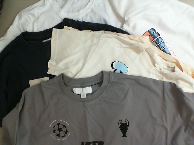 Set of 7 Black short-sleeved crew neck t-shirt with a pattern.