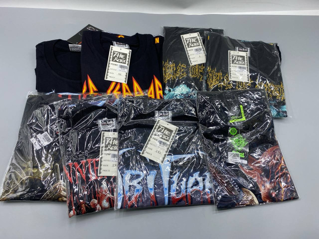 This set includes seven stylish black short-sleeved crew neck t-shirts, each featuring unique patter..
