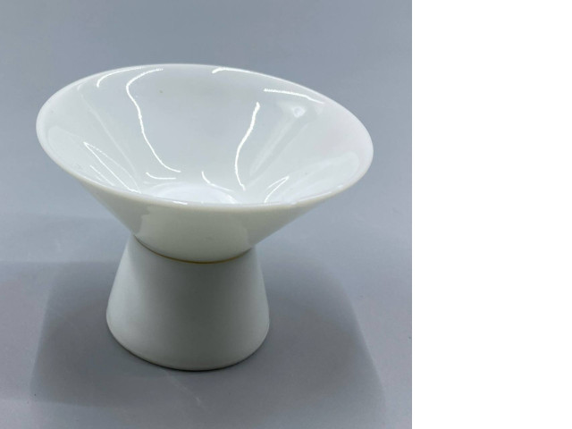 A sake cup, often referred to as 'ochoko' in Japanese, is a traditional vessel used for serving sake, a popular Japanese rice wine. This particular sake cup features a sleek and elegant design, characterized by its conical shape that tapers to a wider rim and narrow base. Crafted from fine white porcelain, it exhibits a smooth, glossy finish that enhances its aesthetic appeal. The minimalist design allows the beauty of the sake to shine through, making it an essential addition to any sake service. Its size is perfect for single servings and promotes the appreciation of sake’s aroma and flavor, providing an authentic drinking experience.
