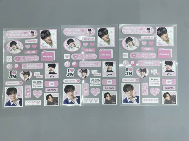 This set includes three sheets of stylish stickers featuring images of the popular figure Lee Jeno, ..