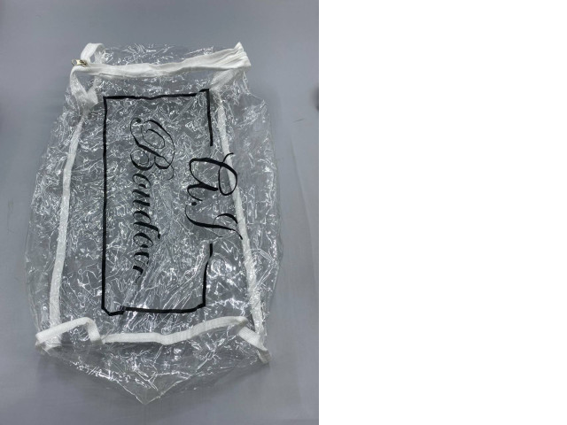 This shoe bag is designed for practical storage and organization of footwear. Constructed from a durable, transparent plastic material, it allows easy visibility of the contents while ensuring protection against dust and moisture. The bag features a white drawstring closure for secure and convenient access, making it ideal for travel, gym use, or home storage. The minimalist design with a stylish black logo adds a touch of elegance, making it not only functional but also aesthetically pleasing.