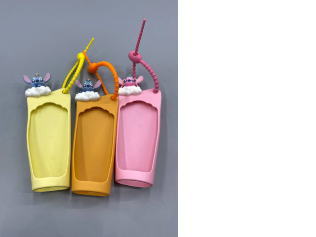 Set of 3 Portable silicone water bottle or hand sanitizer holder featuring Disney's Stitch design.