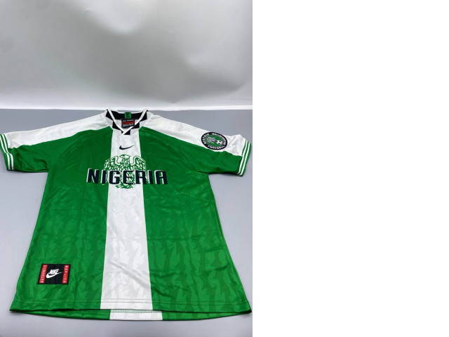 Green collared sports shirt with white stripes