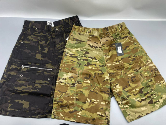 Set of 2 Men's three-quarter length shorts with a camouflage pattern.