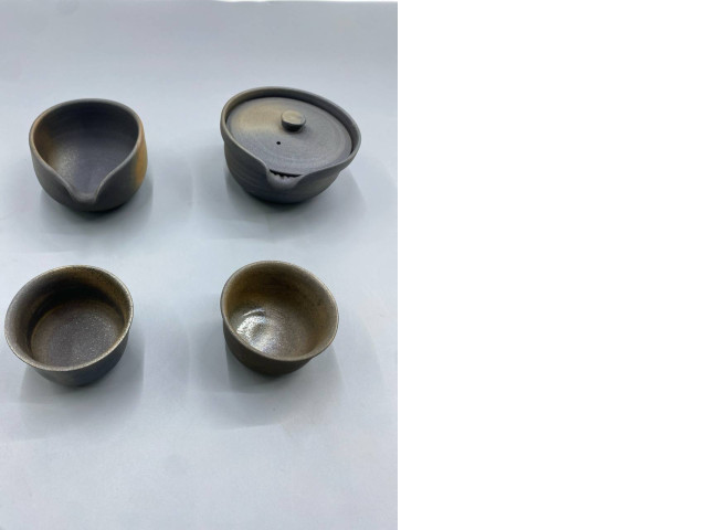 Set of 4 Tokoname Shiboridashi tea set, a traditional Japanese style designed specifically for brewing high-grade teas like Gyokuro at lower temperatures.