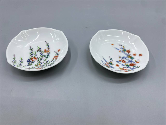 Set of 2 An antique Japanese porcelain plate, believed to be of Kutani porcelain, featuring intricately hand-painted floral patterns.