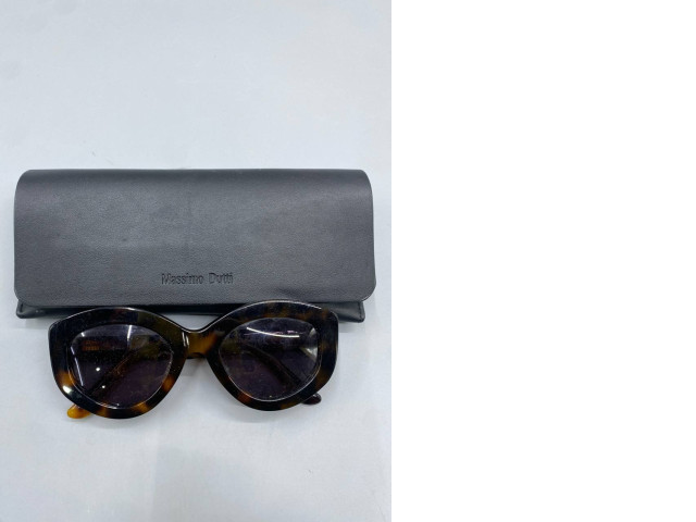 Fashionable women's sunglasses and a black glasses case.