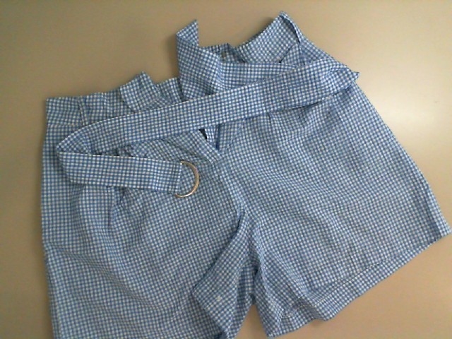 Blue fabric shorts with a belt