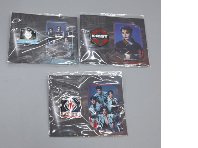 Set of 3 A limited edition photo set featuring pins and postcards from GMMTV artists, specifically the LYKN group and artist Krist, including LYKN "First Sight" and LYKN "Feel Like Me".