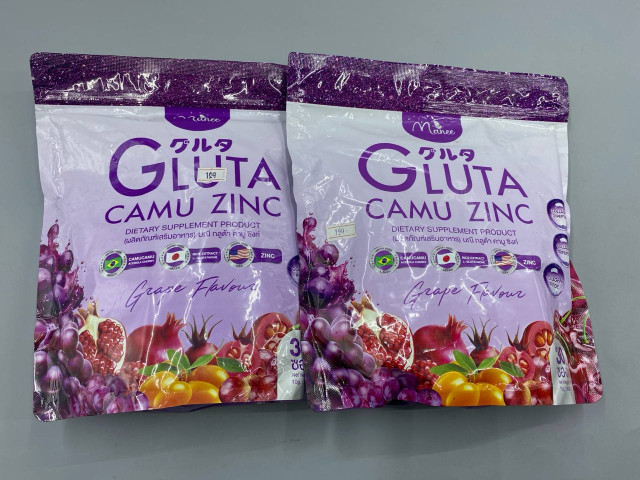 • Set of 2 Manee Gluta Camu Zinc dietary supplement powder.
