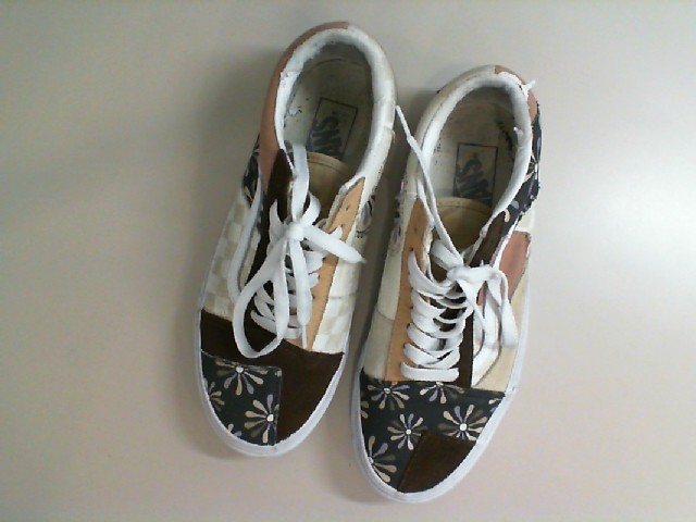 These brown fabric kendas feature a unique patchwork design, blending various shades of brown, cream, and black. The upper is made of durable fabric, ensuring comfort and breathability. The laces are white, providing a striking contrast against the dark hues of the shoe. The soles are designed for traction, making them suitable for various surfaces. The stylish floral pattern adds a playful touch, perfect for casual outings. These kendas are not just shoes; they are a statement piece that combines functionality with artistic flair.