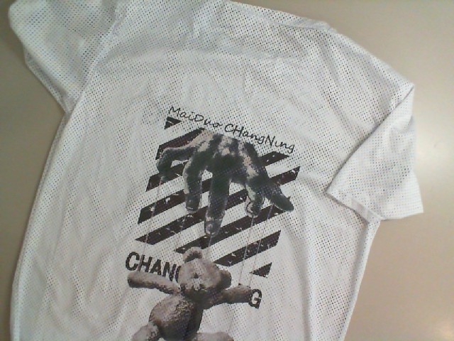 White mesh T-shirt with a pattern