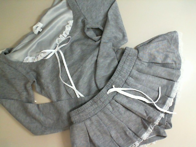This women's gray suit features an elegant design, combining a fitted skirt and a corset-style top. ..