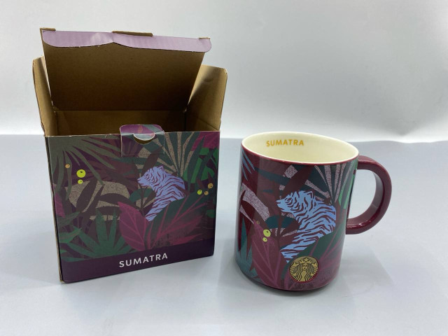 Starbucks Sumatra coffee mug featuring a jungle and tiger design.