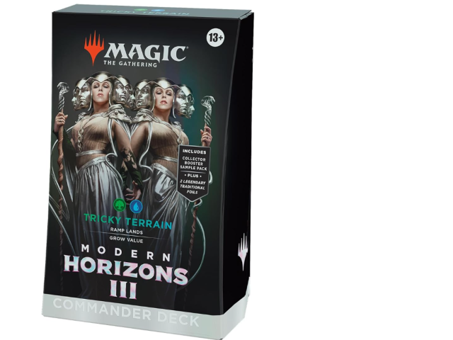 Card game Magic: The Gathering Modern Horizons 3 Commander Deck - Tricky Terrain (100-Card Deck, 2-Card Collector Booster Sample Pack + Accessories)