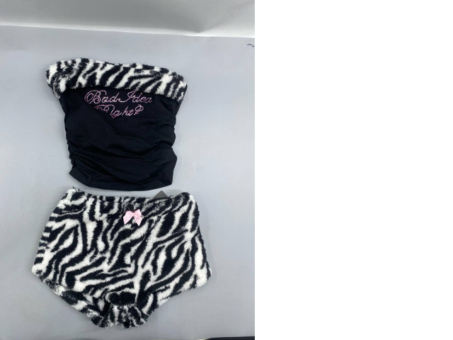velvet top and shorts set with a Y2K-style zebra print, embellished with faux diamonds, from the brand ROMWE.