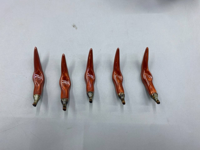 set of 5 Chopstick rest in the shape of a chili pepper.