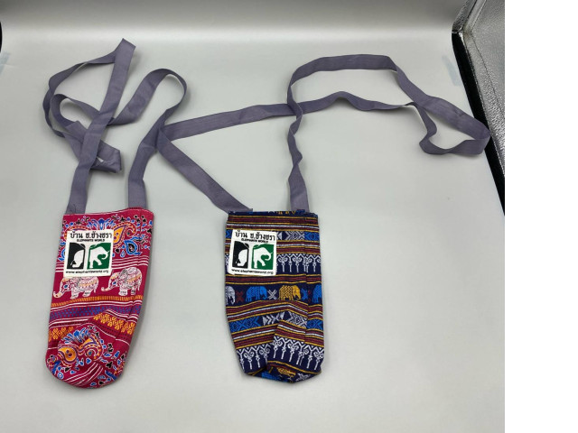 Set of 2 Thai elephant patterned crossbody bags are often used to carry mobile phones.