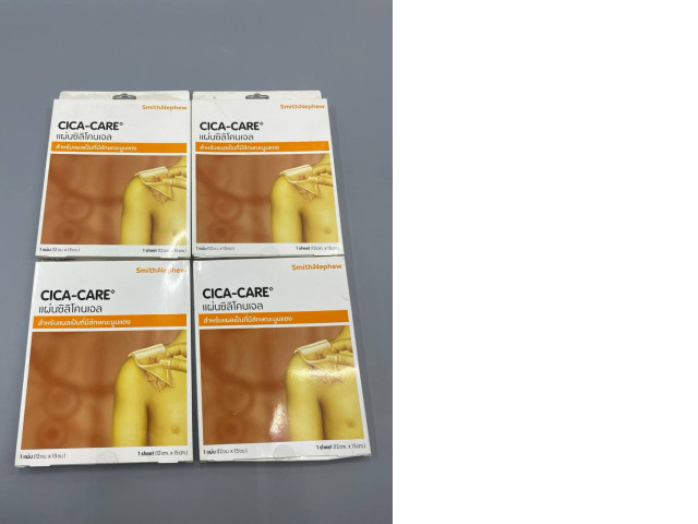 set of 4 Cica care silicone gel sheets reduce raised, red scars.