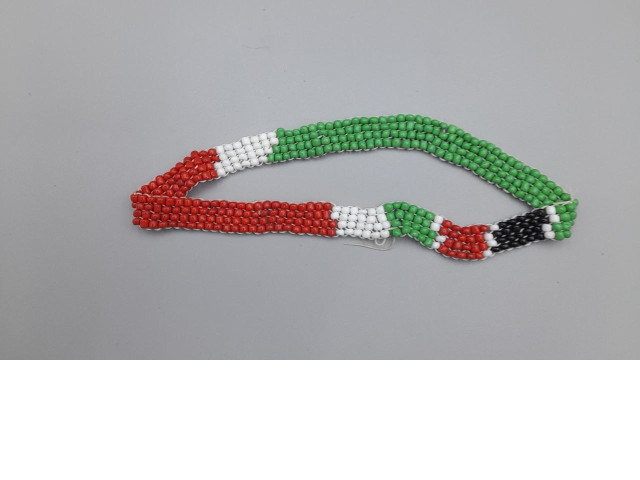 handmade beaded bracelet featuring the colors of the Kenyan flag.