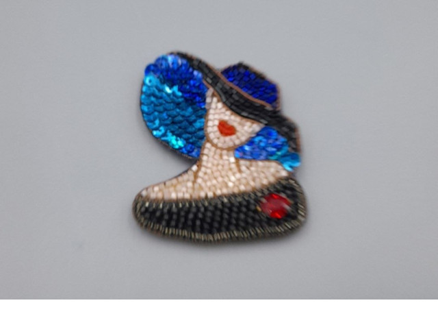 Brooch in the shape of a woman wearing a hat.