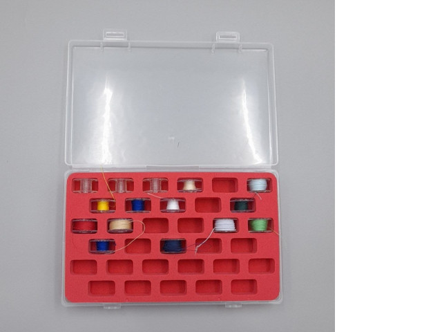 LALAFINA plastic sewing bobbin organizer box designed to hold and protect bobbins.