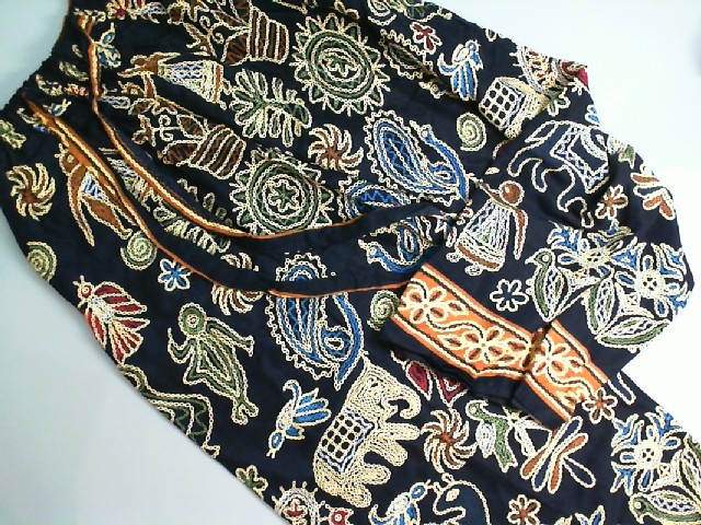 Trousers with drawstrings, black with a pattern