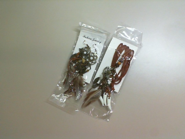 Jewelry set, Earrings with feathers + pendant on a cord with feathers