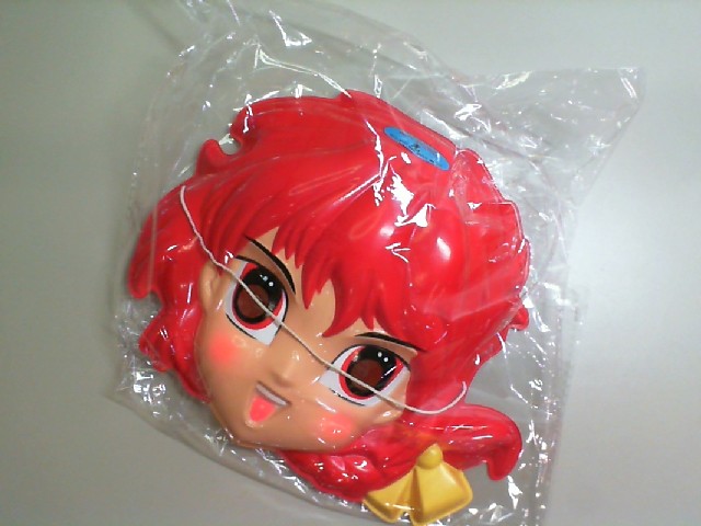 This charming children's plastic face mask features a bright red hair and anime-style characterization. The mask includes cute details such as sparkling eyes with glasses, rosy cheeks, and a delightful smiling expression, topped off with a stylish yellow bow. These vibrant features are sure to capture the imagination and bring any costume or playtime to life. The mask's plastic material is lightweight and designed for comfort, perfect for children's dress-up events or themed parties.