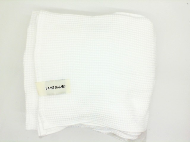 This set of 2 white SAME SAME Blankets features a crisp, clean aesthetic with a subtle waffle-weave texture that adds an element of sophistication and comfort. Each blanket is adorned with a SAME SAME label, indicating the brand and its commitment to quality and style. These all-season blankets are versatile, perfect for layering on a bed or cozying up on the couch. Their neutral white color ensures they can blend seamlessly with any room decor while providing a gentle warmth that makes them an inviting addition to your home.