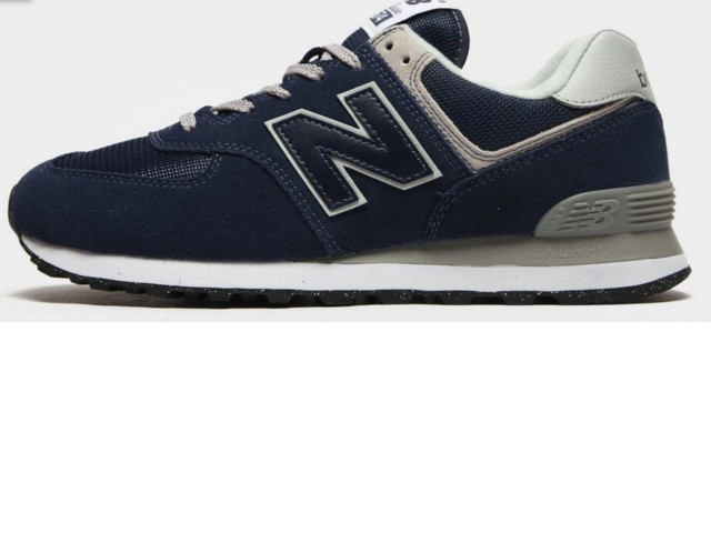 The NEW BALANCE 574 core size 8 shoes are a classic and versatile option for everyday wear. Featured in a navy blue color with a large iconic 'N' logo emblazoned on both sides, these sneakers embody a sleek and timeless style. The upper is constructed of a durable combination of suede and mesh, offering both support and breathability. The flat, cream-colored laces complement the design while ensuring a secure fit. These shoes also feature a cushioned midsole for comfort and a solid rubber outsole for traction and durability. The tongue and collar appear to be padded, enhancing the comfort for the wearer. Moreover, the subtle hints of beige around the heel and on the tongue label add a touch of elegance to the overall aesthetic. Size 8 suggests that these are designed for those with a specific foot size, ensuring a snug and comfortable fit.