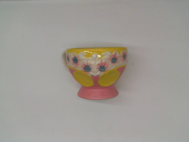 This is a vibrant red drinking glass featuring a charming cartoon character. The character's playful..