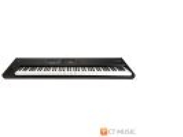 The Korg Nautilus 88 Key AT is a premium performance synthesizer that combines a full-range, weighted 88-key keyboard with state-of-the-art sound generation technology. Visible in the image is the sleek, black design of the synth, which is both classic and professional, making it an attractive choice for stage performers and studio musicians alike. The clear control layout with numerous knobs, sliders, and a central color touchscreen display highlights its user-friendly interface for sound manipulation and performance control. Additionally, it appears to have a full set of pitch and modulation wheels, enhancing expressive opportunities for the user. It's a versatile instrument suitable for a broad range of music styles, imbued with Korg's renowned attention to sound quality and detail.