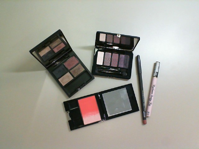 Set of 2 eyeshadow palettes + blush + 2 makeup pencils