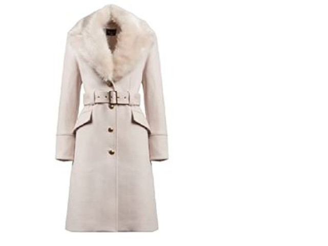 This sophisticated black coat features a minimalistic design that exudes elegance. The sleek, dark f..