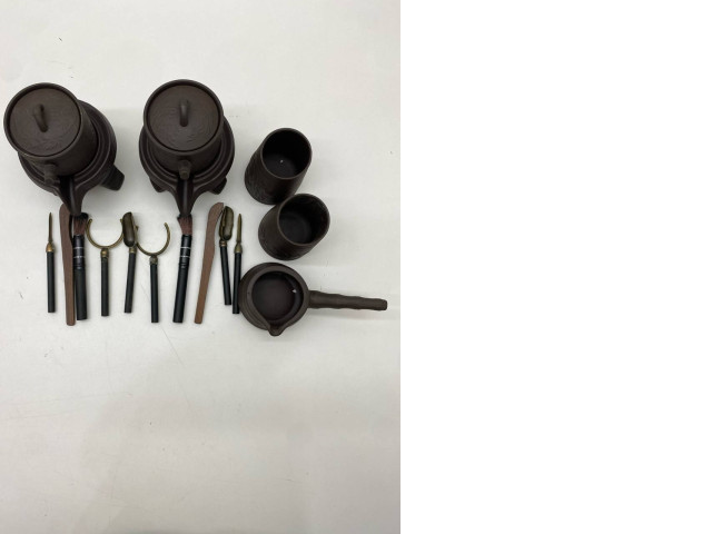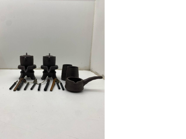 The Big Matcha Brewing Set offers an elegant and complete solution for preparing traditional matcha tea. This set features beautifully crafted ceramic pieces, including a pair of brewing bowls that exude a rustic charm. Accompanying the bowls are an array of essential tools, such as bamboo whisks and scoops, meticulously designed to enhance the brewing experience. The rich, dark tones of the pottery not only add visual appeal but also help maintain the tea's temperature. Whether you're a seasoned matcha enthusiast or a newcomer, this set promises to elevate your tea rituals and provide a delightful journey into the world of matcha.