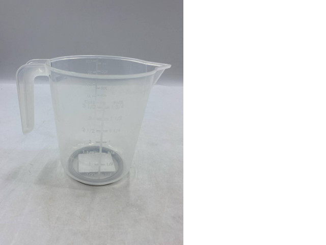transparent plastic measuring jug, likely with a 1-liter