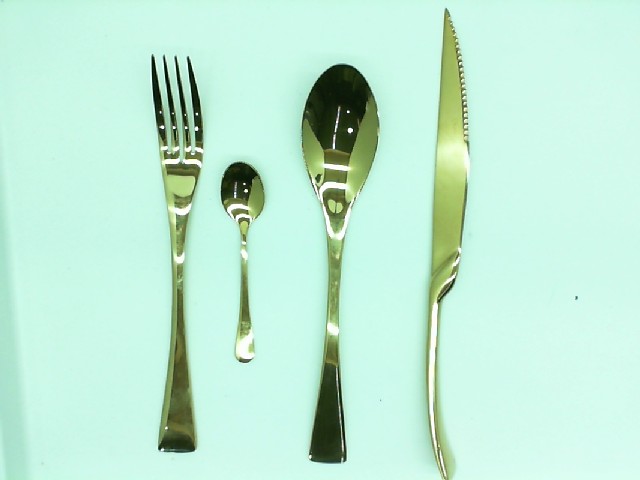 A large set of kitchen utensils consisting of a fork, a knife, a teaspoon and a tablespoon (for 15 people)