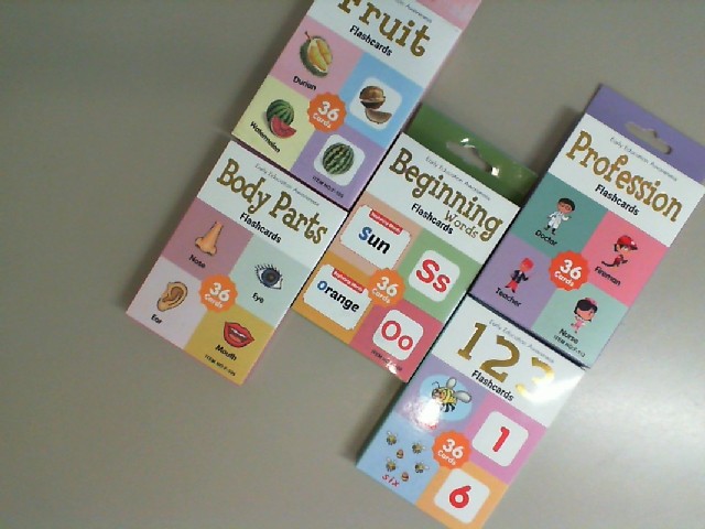 A set of 5 flashcards for learning English