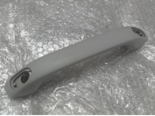 The AB39-2131406-AB3BMA handle is a durable and ergonomic handle designed for ease of use. Crafted from high-quality plastic, it features a smooth, matte finish that provides a comfortable grip while reducing the chances of slipping. The handle is designed to fit various applications, making it versatile for different settings. It includes two cutouts at both ends for secure mounting, ensuring stability and safety when in use. Its neutral gray color allows it to blend seamlessly with other components or structures.