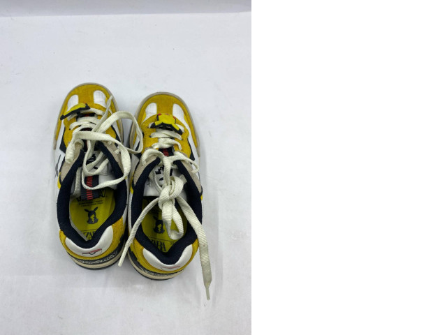 Aimé Leon Dore x New Balance 827 Abzorb sneakers in yellow and white.