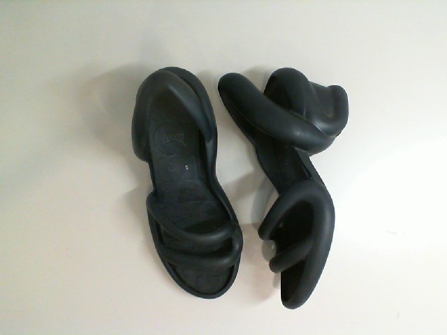 These women's rubber platform shoes feature a unique, contemporary design that makes them stand out. Made entirely from durable rubber, the shoes are not only flexible but also resistant to water, making them ideal for various weather conditions. The platform heel offers additional height while ensuring comfort, while the innovative strap design hugs the foot securely. The shoes' sleek black color adds versatility, allowing them to be paired easily with casual or dressy outfits. Ideal for both indoor and outdoor wear, these shoes combine fashion and functionality seamlessly.