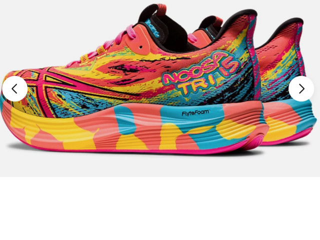 The ASICS Noosa Tri 15 Men's Running Shoes in the colorway Aquarium/Vibrant Yellow are designed for those seeking a combination of performance and style. The shoes feature a vibrant, multicolored pattern with a mix of pinks, blues, yellows, and other hues to create an eye-catching design. Prominent on the side is the 'Noosa Tri 15' branding, adding to the shoe's identity. Equipped with ASICS' innovative FlyteFoam technology, this shoe offers lightweight cushioning, ensuring comfort during long runs or triathlon races. Additionally, the strategic use of colors and patterns creates a dynamic look that stands out, making this running shoe not just a piece of sports equipment but also a fashion statement for athletic and casual occasions.