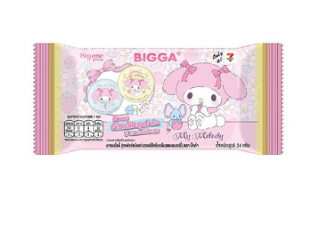 Bigga Strawberry Wafer is a delightful confectionery treat that combines the delightful crunch of wafer layers with a delicious strawberry filling. The product is packaged in an attractive wrapper adorned with charming illustrations featuring My Melody, a beloved character from Japanese culture. This whimsical design appeals to both children and adults alike. The wafers are light and crispy, offering a satisfying texture that complements the sweet, fruity flavor of the strawberry cream. Each bite delivers a perfect balance of sweetness and crunch, making it an ideal snack for enjoying with friends or on the go. Additionally, the My Melody pin included adds a collectible aspect that fans will appreciate.