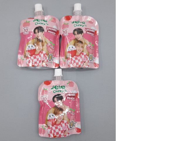 Set of 3 Chewy lychee and peach flavored jelly, starring Thai actors Seepruk and Nunew Chawarin.