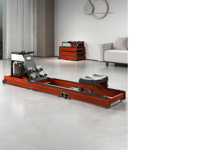 The KingSmith Folding Rowing Machine is designed for both beginners and experienced fitness enthusiasts looking to enhance their home workout experience. This rowing machine features a sleek, ergonomic design that not only emphasizes functionality but also aesthetics, allowing it to fit seamlessly into any modern living space. It is constructed from durable materials, showcasing a wooden finish that adds warmth and elegance to your home gym. The machine is foldable, which makes it easy to store when not in use, saving valuable space. The adjustable resistance levels enable users to customize their workouts, accommodating various strength levels and fitness goals. The comfortable seat glides smoothly along the rail, and the anti-slip foot pedals ensure stability during intense sessions. Additionally, an integrated digital monitor tracks workout metrics such as time, distance, calories burned, and strokes per minute, providing a comprehensive overview of your progress.