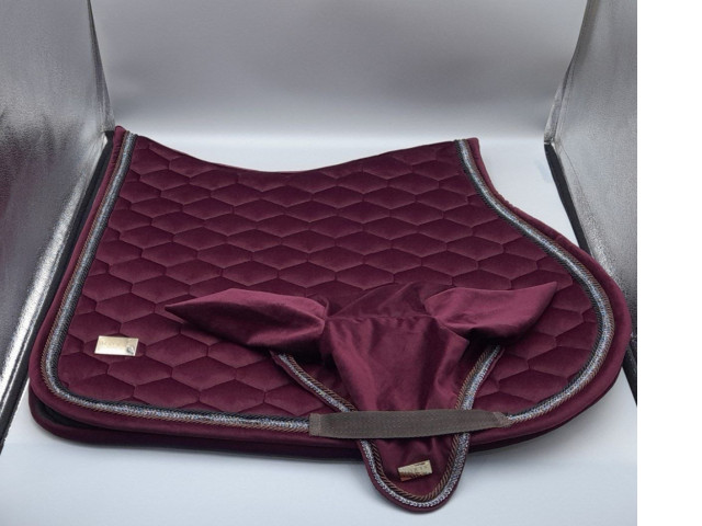 The HORSS Velvet Glam Red is a luxurious equestrian accessory designed to combine style and functionality. Made from high-quality velvet material, this saddle pad features a stunning red shade that exudes elegance. Its unique hexagonal quilted pattern not only adds visual interest but also provides extra cushioning and comfort for the horse. The product is fitted with protective ears to ensure a secure fit, while the decorative trim offers a refined finish. Ideal for competitions or everyday riding, the HORSS Velvet Glam Red elevates your riding gear while ensuring that both you and your horse look fantastic.