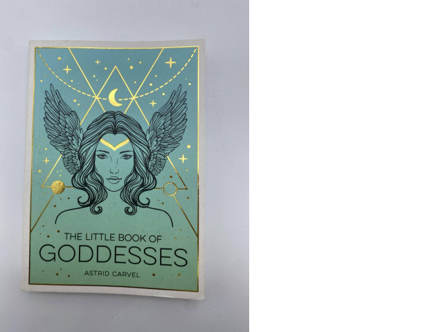 The Little Book of Goddesses by Astrid Carvel is a beautifully illustrated guide that takes readers on a mystical journey through various goddesses from different cultures. The cover features a striking illustration of a woman with majestic wings, symbolizing freedom and strength, surrounded by celestial elements like stars and a crescent moon. The vibrant mint green background enhances the gold accents, creating an enchanting visual appeal. This book serves as both a source of inspiration and a spiritual guide, offering insights into the attributes and stories of goddesses, making it perfect for anyone interested in mythology and empowerment.
