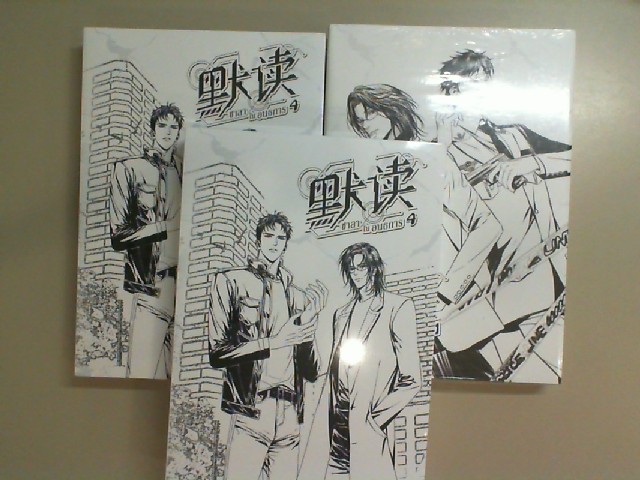 A 3-volume set of comic black and white books in Thai