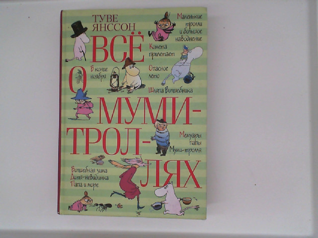 This product appears to be a Russian edition of a book related to the Moomin characters, created by Tove Jansson. The cover illustration is colorful and depicts various Moomin characters in amusing poses, likely capturing moments from the Moomin stories which are known for their warmth, simplicity, and appeal to both children and adults. The presence of these lovable characters on the cover adds to the visual appeal of the book and sparks curiosity about their adventures. It's a hardcover edition, indicating durability, and the title implies that the book is comprehensive, possibly encompassing multiple stories or providing in-depth insights into the world of Moomins. This combination of factors makes it an engaging read for fans of the Moomin series and a delightful addition to any bookshelf.